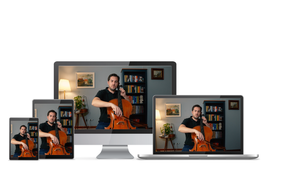 Access your lessons from any device, anywhere in the world. All you need is your cello and an internet connection.
